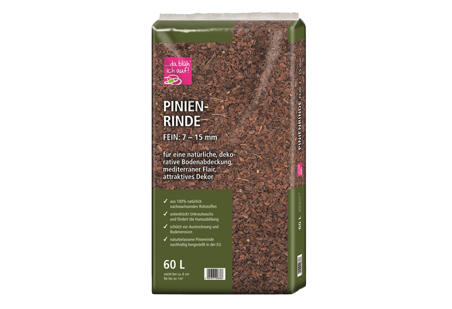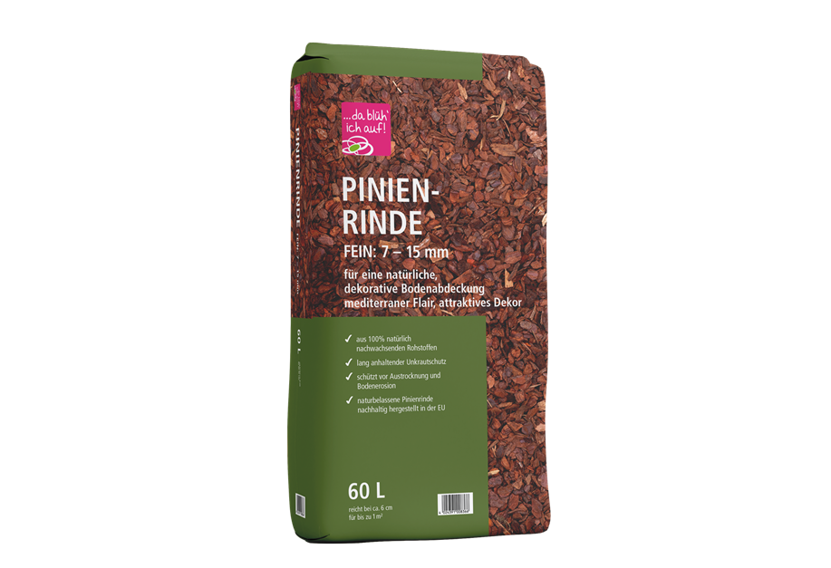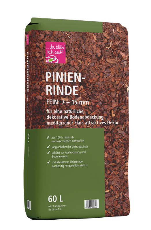 Unsere Pinienrinde ist eine natürliche, dekorative Bodenabdeckung für deine Beete und Wege.